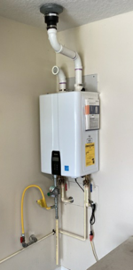 Pictured is a recent installation by a Coggin plumber of a Navien tankless gas heater.