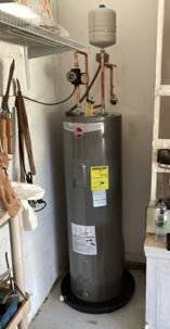 Often homeowners realize they need a replacement when they discover either a leak, or no hot water at the tap. Pictured is a newly replaced tank manufactured by Rheem.